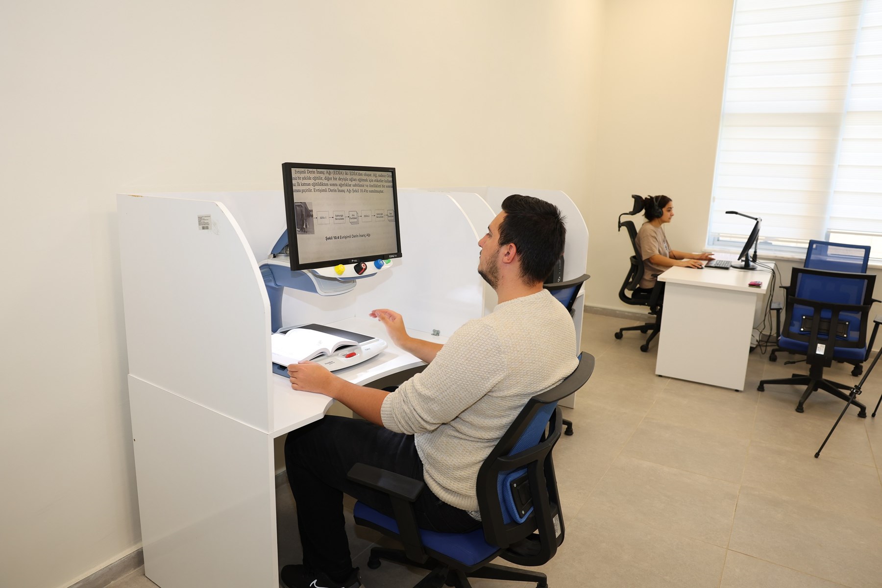 Özellikle bilgi kaynaklarını kullanma aşamasında daha fazla desteğe ihtiyaç duyan görme engelli öğrencilerimize yönelik güncel teknolojileri de takip etmekteyiz. Bu kapsamda kütüphanemizde bulunan cihaz, programlar ve üyeliklerimiz şu şekildedir: